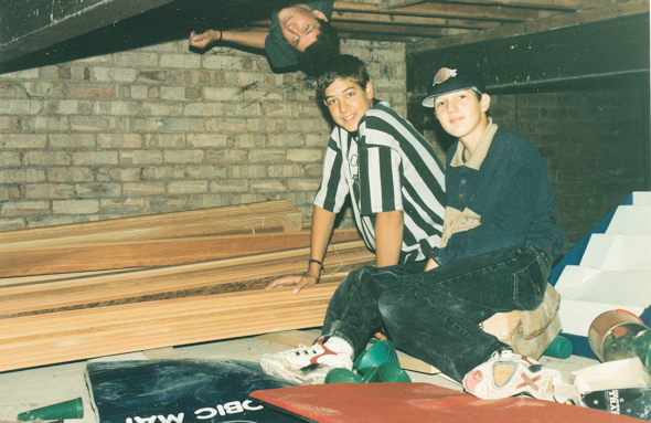 The Church very kindly allowed us to store the planks of Cedar under the stage in the main church hall. Here, Ross, Dave and John can be seen retrieving the wood.  Ross is hanging through the trap door!