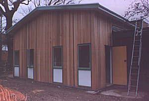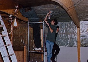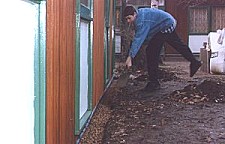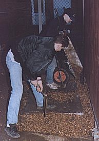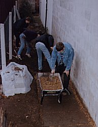 In the picture on the right which was taken on the same very overcast day as the above picture Ross Denton and Jon Goodwin can be seen leveling the first few paving stones and surrounding them with gravel.