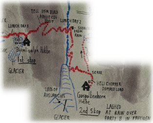 To the left you can see a shrunken sketch map of our entire hike. and below is a photo of the