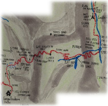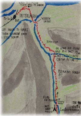 ourselves. Because all the camp sites at the end of day 3 were full we walked most of day 4 before stopping for the night. It's now Just a few K to Interlaken, might get there early, Nahh
