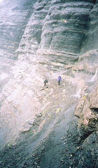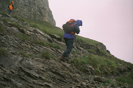 Returning along the scree path with the chains was no more fun than climbing up it. More rain had made it slightly more slippery.