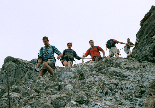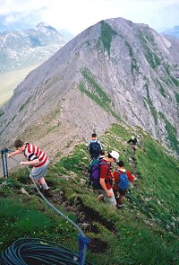 ABOVE: Group 1 tackling the tricky section of the ridge just after Mount