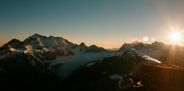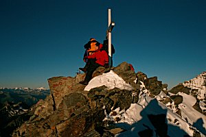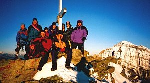 After passing the little hockenhorn we climb up a short steep snow field before commencing the rocky scramble to the top. I say rocky but there was also a lot of snow on the rocks. The snow made the climb slippery but there was no need to get a rope out. The peek itself is a small collection of boulders. Even the most confident climbers and walkers of 3rd Gidea Park slowly scramble around with hands on rocks to steady themselves. As usual the pictures don't do justice to how steep and exposed the peek is. |