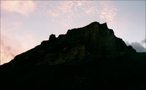 may hold you up lads" Preston leading the way. At 4am when we woke, Ross told us that the weather was fine and that the plan was on. By the time we had finished breakfast there was a thick fog outside. Unfazed we decided to start out anyway and if the weather didn't improve we would be forced to turn back. BELOW: The view up the Gemmi Pass. | ||