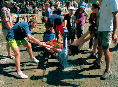 large sheets and water balloons. After a short break for lunch the afternoon activities commence. The afternoon activities are based around the sportfield where a summer fair is set up. As well as the staff organised activities such as pillow fighting and ducking stool individual groups also set up their own events. Many of these offer a taste of their own countries cuisine. |