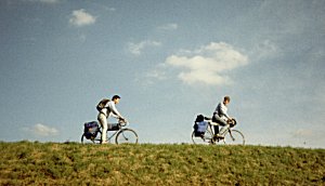 visited the Abbey, bought some papers (Mike slept on them), and cycled onwards. |