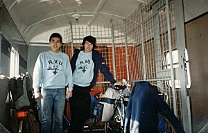 bikes up the station steps. Train delayed by 25 mins. (BR - we're getting there!).