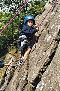 We succeeded in getting all the Gidea Park Scouts and a good number of Wimbledon Scouts through the Climbers Badge. Scout Leader Mark's cousin (right) was disappointed that at three, he was a tad too young to qualify for the Scout badges. |