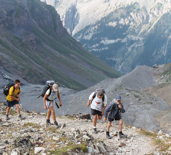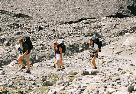 the moraine up to the hut.