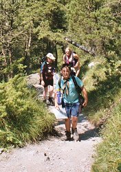 On Monday we split into four groups for four different hikes. This page depicts the progress of the two scout groups. In all cases the first hike was intended to get everyone used to walking the steep alpine paths. The hike was short and didn’t involve much climbing. The biggest shock of all was dealing with the heat!