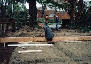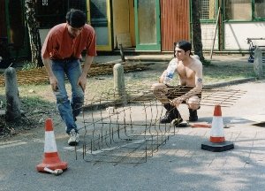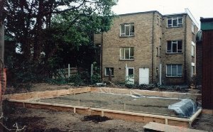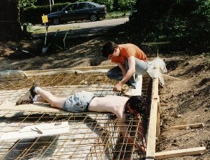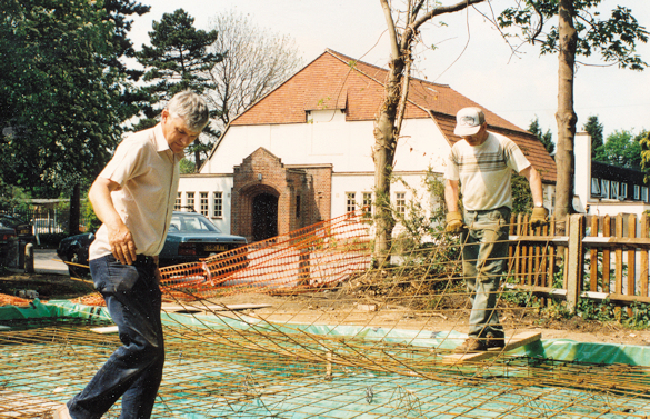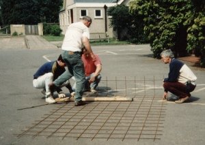 To strengthen the concrete base, iron reinforcing grills